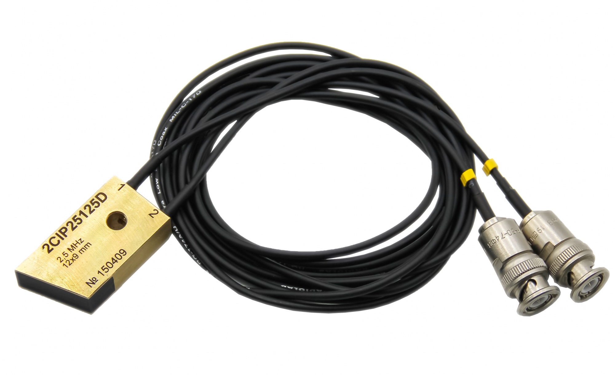 Ультразвуковой иммерсионный двухканальный преобразователь 2СIP25125D (Т02.27 П211-2-12.5-2.5Д) предназначен для работы в составе автоматизированной установки ультразвукового контроля труб на базе измерительной системы ДЭКОТ (прозводства ООО ЦНТУ "Экоцентр", г.Таганрог). Используется для поиска поперечных дефектов.