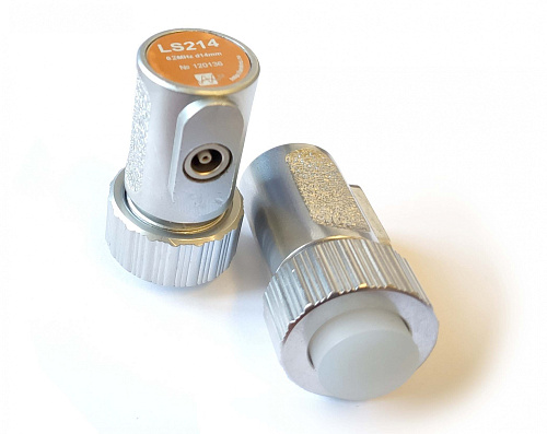 LS214 - ультразвуковой контактный низкочастотный  раздельный преобразователь  для теневого способа контроля. Выпускается в двух модификациях - со сменным силиконовым протектором либо с металлической защитной поверхностью.