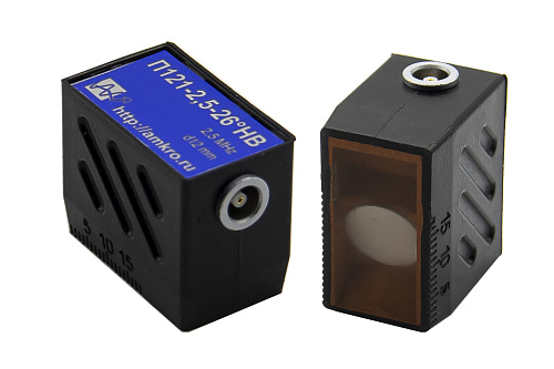 Наклонные совмещенные преобразователи с углом ввода от 40 до 75 градусов предназначены для контроля сварных и паяных соединений, элементов металлических конструкций, трубопроводов и других изделий продольными, поперечными и поверхностными волнами. Призмы преобразователей могут быть изготовлены как из оргстекла так и из износостойкого полимера. Конструкция ПЭП всех серий допускает притирку для контроля стыков и гибов диаметром от 12 мм и более. Все преобразователи имеют корпус из износостойкого пластика или алюминия и разъем Lemo 00. Выпускаются в соответствии с ТУ 427610-002-4407661-2016 "Ультразвуковые пьезо-электрические преобразователи. Общие технические требования."
