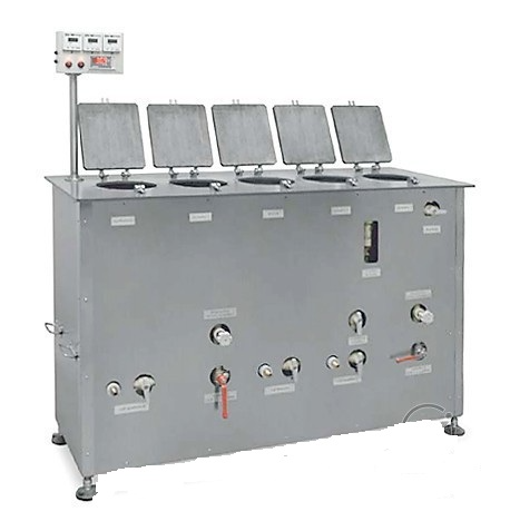 Составляющие элементы установки: бак проявки, бак промежуточной промывки после проявления (проточная вода), бак закрепления, бак промежуточной промывки после закрепления (сборная вода), бак окончательной промывки (проточная вода).