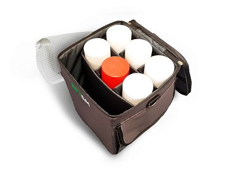 · Внутренне пространство поделено съемными разделителями на липучках на семь отделений, шесть из которых предназначены под баллоны и одно под ветошь. При необходимости можно поменять компоновку переставляя разделители, например, увеличив место для ветоши в основном отсеке